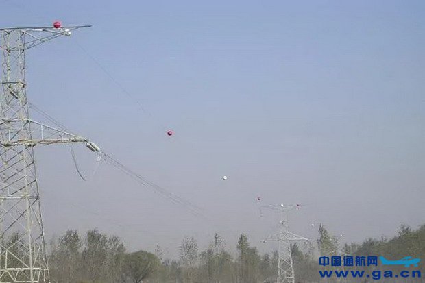 ![]() 图:欧美发达国家高压电线的航空障碍球设置图例