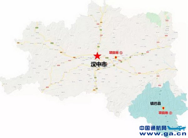 通航飞机生产制造基地选址汉中市航空智慧新城;通航服务基地选址镇巴县,依托规划建设的镇巴通用机场。