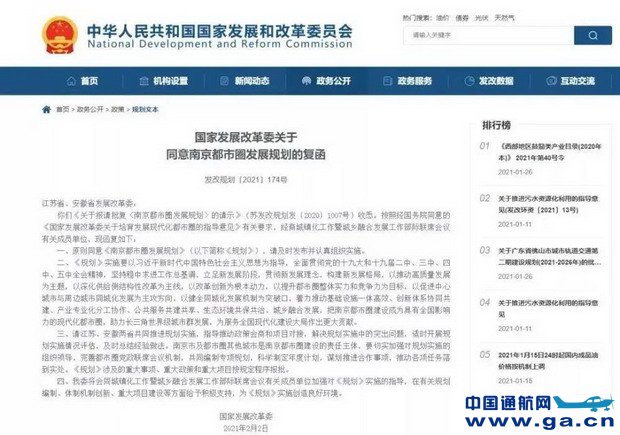 国家发改委发布公告:原则同意《南京都市圈发展规划》。