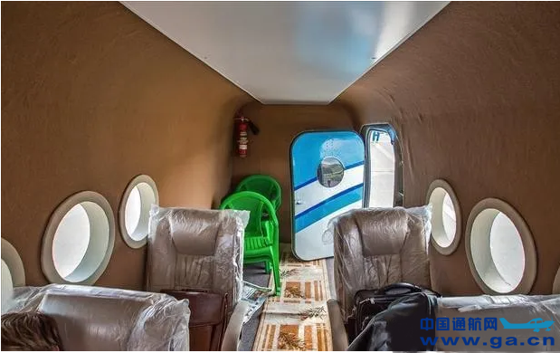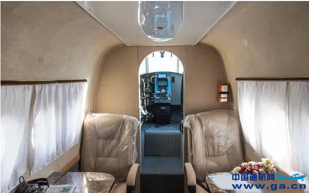 ![]() 宽大的商务沙发,小桌板,白色窗帘,还有那盆插在泡沫上的塑料花,运5努力在构建一个舒适的空中环境。