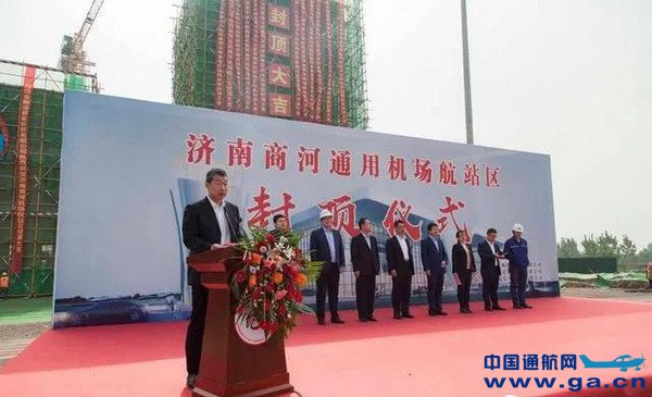 ![]() 2021年1月8日,打下第一根预制桩;4月10日,机库主体钢结构安装完成;动力中心从开工仅用时60余天,于2021年4月18日封顶;综合业务楼从开工用时不到4个月,于4月20日主体封顶;5月4日,塔台主体封顶,标志着济南商河通用机场航站区工程全部封顶。