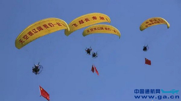 ![]() 动力伞空中编队“炫技”。 蒋继航 摄