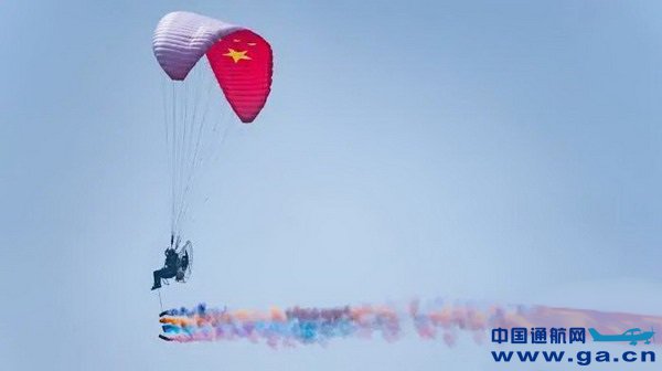 ![]() 动力伞空中编队表演。 马佳欣 摄