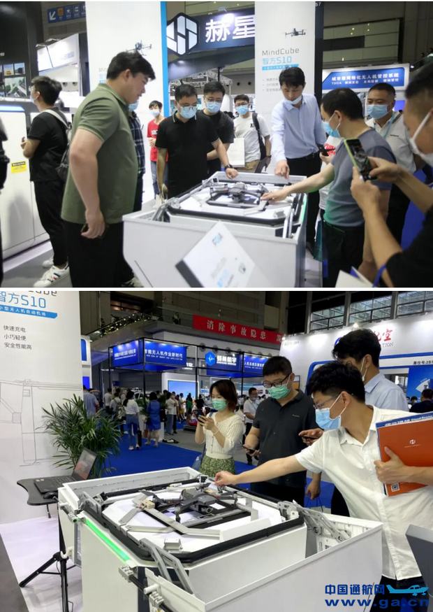 现场,复亚智能智方S10无人机小型自动机场也备受关注,诸多客户及业内同仁驻足观摩。S10专为大疆Mavic2 行业版系列小型无人机量身打造,因其尺寸小、重量轻,部署方便,可以部署在屋顶平台、变电站、产业园区等多种场合,作业风险小、安全性高。在任务密集区域,可通过多台部署以形成网格化、全方位的防控巡逻,在城市管理、交通巡逻、公共安全、园区安防中大显身手。