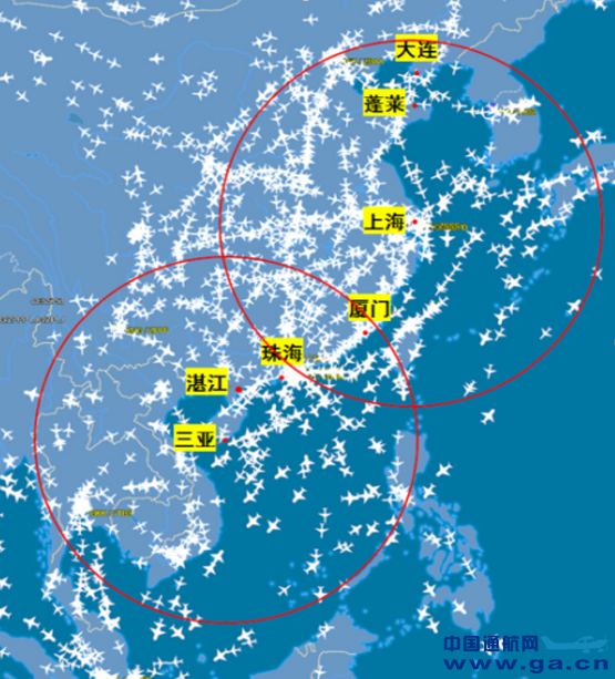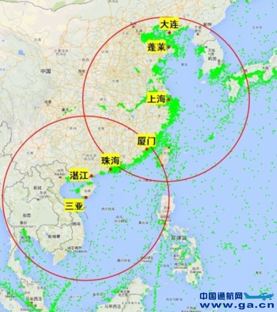 结合我国现有的海上救助机场分布情况,如果在上海和三亚基地部署AG600,可覆盖我国全部海域。布署在上海基地,能够覆盖多数离我国陆地较近的东部海域海上船舶航道及多数民航客机航线;布署在三亚基地,可实现台湾海峡南部和珠三角海域的重复覆盖,有效救助半径能够覆盖我国绝大部分领海及专属经济区,特别是我国海难多发的内海主航道(环渤海湾、长三角、台湾海峡、珠三角)全部在救助范围内。