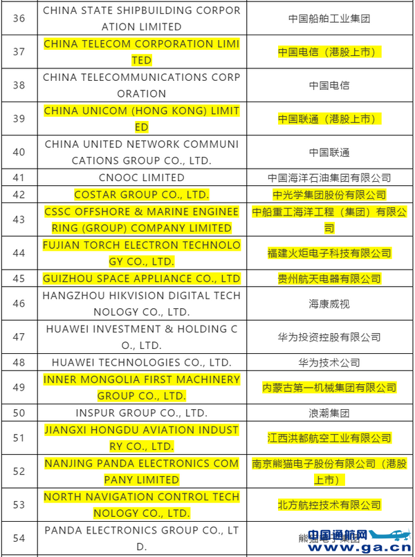 △ 清单中所列有关中国航发的具体信息
