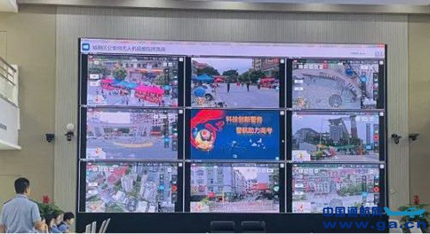 通过无人机,可以高空远距离对考场周边治安、交通、人流等情况进行观察,监测是否出现扰乱高考秩序的“黑飞”无人机,配合地面勤务、巡逻、交通引导等工作展开空中督察。无人机将8处不同考点及重点区域空中画面通过“鹰眼指挥系统”实时回传到高考安保指挥部,在指挥部大屏可清晰查看实况。