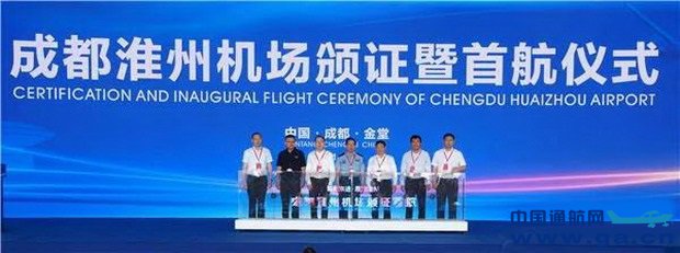 人民网成都6月12日电 (郭莹)6月11日上午,川航集团旗下成都淮州机场颁証暨首航仪式隆重举行。民航四川安全监管局向机场运营方成都通用机场运营管理有限责任公司颁发机场使用许可証,并进行了首飞仪式,这标志著川航旗下首个通用机场正式通航。