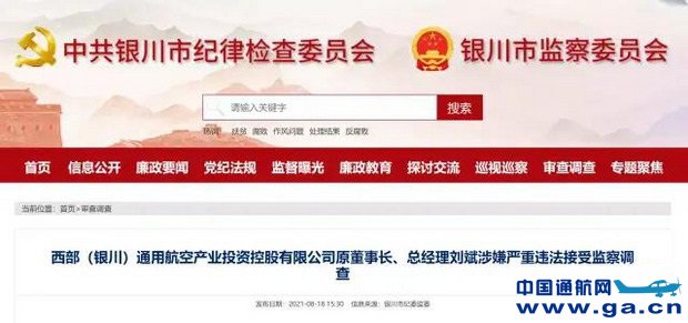 本文链接地址:涉嫌严重违法!西部(银川)通用航空产业投资控股有限公司原董事长刘斌接受监察调查