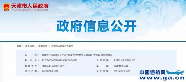 日前,天津政务网公布了《天津市人民政府办公厅关于印发天津市综合交通运输“十四五”规划的通知》(以下简称天津交通“十四五”规划)。未来,天津将坚持港口为魂、铁路为骨、道路为基、航空为翼,基本建成海空两港链接全球、世界一流,公铁两网密接京冀、覆盖城乡,城市交通快慢有序、公交优先的现代化高质量综合立体交通网,形成枢纽国际化、京津同城化、津滨便捷化、城乡一体化的交通格局。