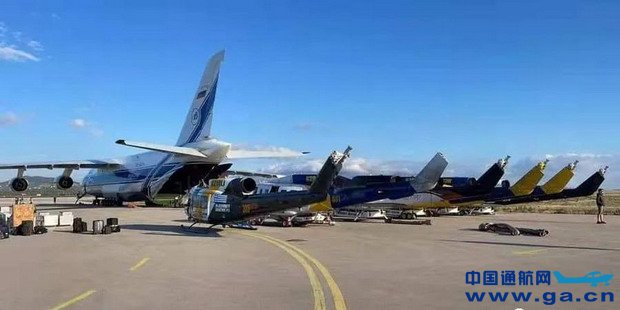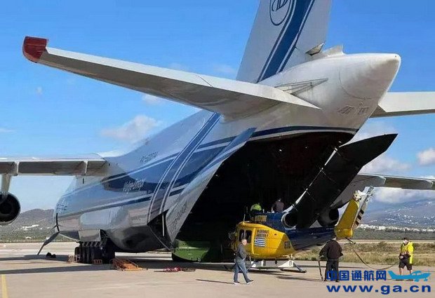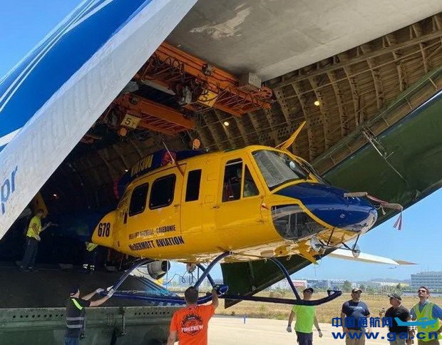 一架An-124运输机从Wellcamp机场起飞,搭载6架贝尔214消防直升机,20多名飞行员和机组人员经由斯里兰卡飞往希腊灭火一线。
