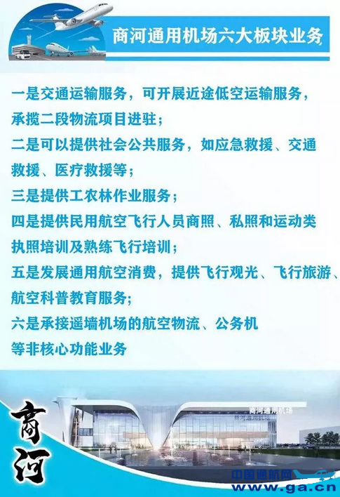![]() 商河通用机场未来可开展交通运输、社会公共服务、工农业作业、飞行培训和遥墙机场航空物流、公务机转移等功能业务。这一项目在商河的开花结果,代表了商河产业发展层级的进一步提升和产业结构的不断优化。 “投资规模大,配套设施全”