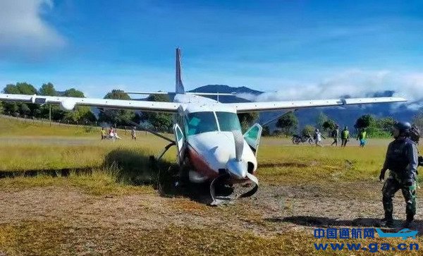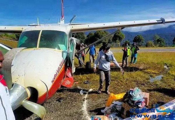 一架赛斯纳208B飞机在印尼苏加帕机场爆胎致飞机偏出跑道