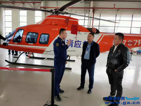队员们在宇航集团总裁肖烈和宇航航空救援总队长陈斌的陪同下参观了直升机机库,公司飞行员介绍了各类直升机机型,现场讲解了在不同救援情况下使用的有关机型等。宇航航空救援中心以应急产业作为应急管理的重要物质和技术保障,发挥直升机及无人机灵活便捷的优势,可实现紧急搜救,空投物资以及空中通讯中继等重要作用。