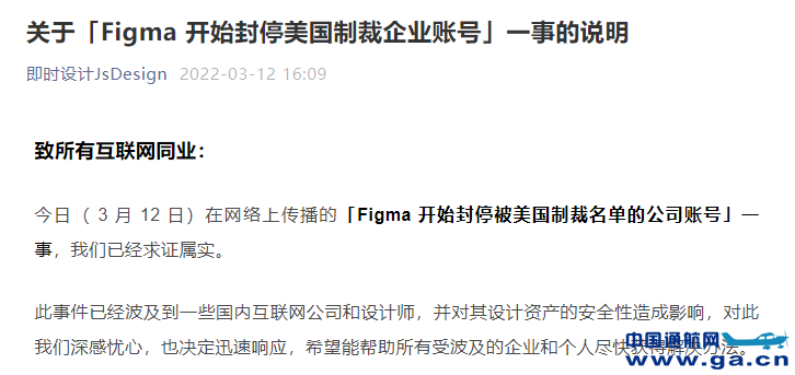 针对网传Figma封停所有被美国制裁名单的公司账号消息,,@即时设计JsDesign 发布公告称,求证属实。