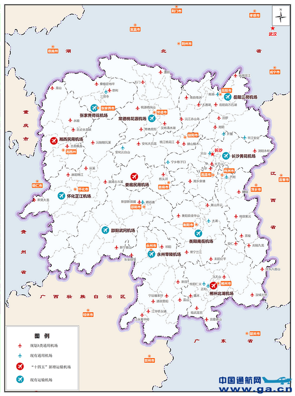 六是强化机场设施,健全通航网络。积极拓展运输机场通航功能,完善长沙、岳阳机场通航基地功能,加快推进张家界、常德、郴州、湘西机场通航基地项目建设;加快建设娄底桥头河机场,推动郴州飞天山、张家界慈利等机场尽快开工,着力构建“1+13”的通用机场骨干网;大力推进直升机起降点布局建设,力争近期发布全省直升机起降点布局图。
