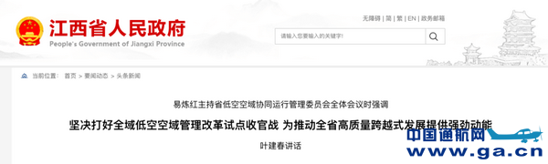 江西: 打好全域低空空域管理改革试点收官战,抢占低空经济"新蓝海"
