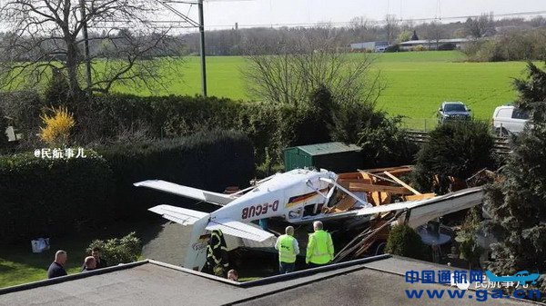 据当地目击者证实,这架飞机在空中突然失去动力,最终在一座房屋花园中迫降。可能是因失去动力后飘降姿态难以控制,着陆时为倾覆姿态。