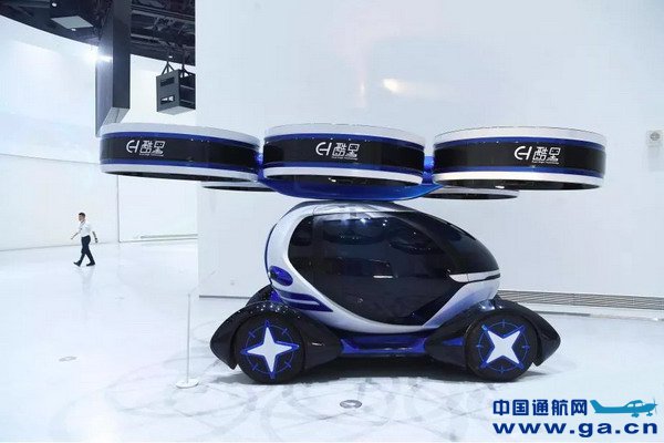 中新网报道,5月7日,来自北京理工大学重庆创新中心自主开发、研制的分体式飞行汽车亮相重庆两江新区明月湖协同创新馆。据悉,这款分体式飞行汽车是具有陆地行驶能力以及空中飞行能力的“全域化、智能化、分布式”集成装备。最大载重可达160KG,空中续航时间30分钟,最高飞行高度可达1000米。图为分体式飞行汽车亮相明月湖协同创新馆。