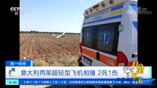 当地时间5月22日,意大利南部普利亚大区特拉尼发生一起超轻型飞机相撞事故,造成2人死亡,1人受伤。