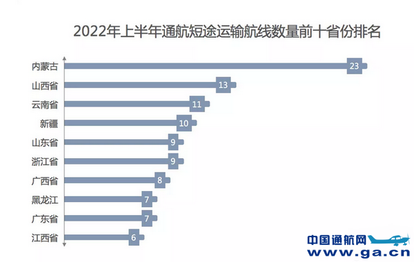 2022上半年十大通航短途运输省份排名