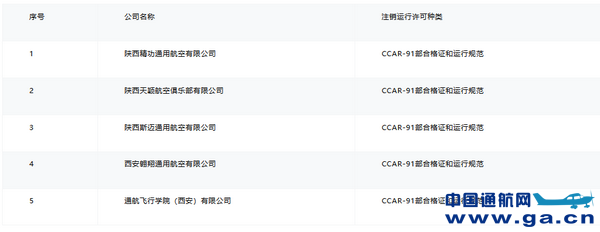 对于按照原CCAR-91部运行合格审定,仅持有一般商业飞行(除跳伞外)运行种类商业非运输运营人运行合格证和运行规范的通航公司,CCAR-91部运行合格证和运行规范将于2022年8月31日集中撤回。具体名单如下: