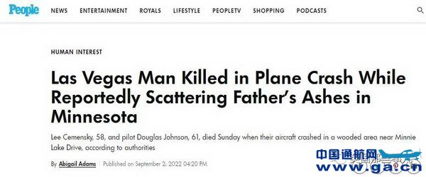 上周日,58岁男子Lee Cemensky搭乘61岁飞行员Douglas Johnson驾驶的两栖飞机,进行一项特别活动。