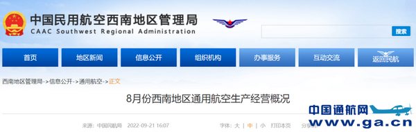 8月份,西南辖区通用航空生产经营状况发展势头平稳。