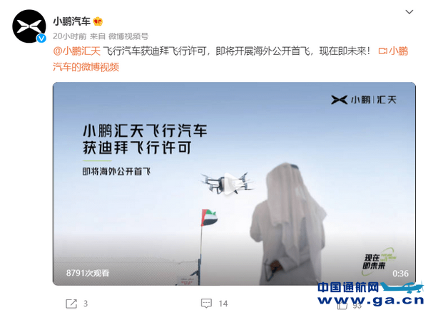 在迪拜民航局批准下,旅航者X2计划在迪拜开展公开飞行展示,这是继2020年7月公开亮相后,首次在海外进行公开飞行展示,是小鹏汇天探索未来低空出行方式的重要尝试,意味着小鹏汇天迈出了飞行汽车全球化之路里程碑意义的一步。