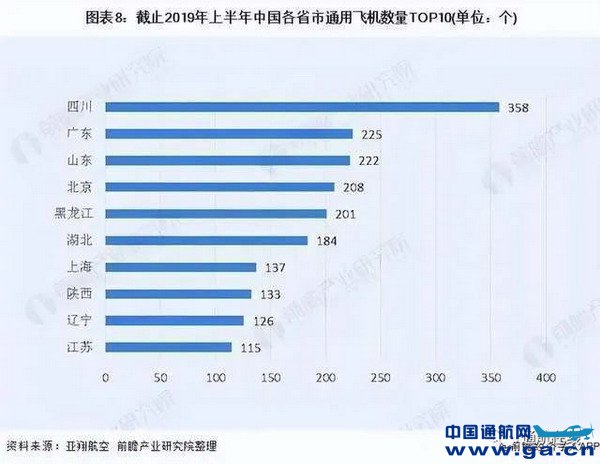 通用航空产业是国家战略性新兴产业,已纳入国家“十四五”重点发展规划。四川作为西部航空工业大省,已将航空与燃机产业纳入全省“5+1”现代工业体系重点发展领域,四川通航产业正在不断地发展壮大。截止2019年上半年,四川通用航空飞机拥有数量达358架,遥遥领先其他省市,位居全国第一。
