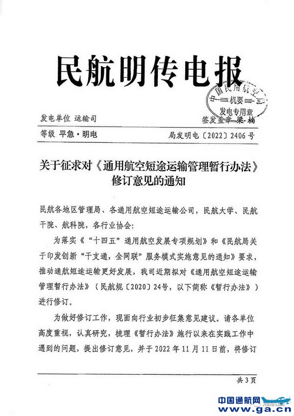 本文链接地址:通航短途运输业务下滑,民航局拟对《通用航空短途运输管理暂行办法》进行修订,修订意见请于11月11日前反馈!