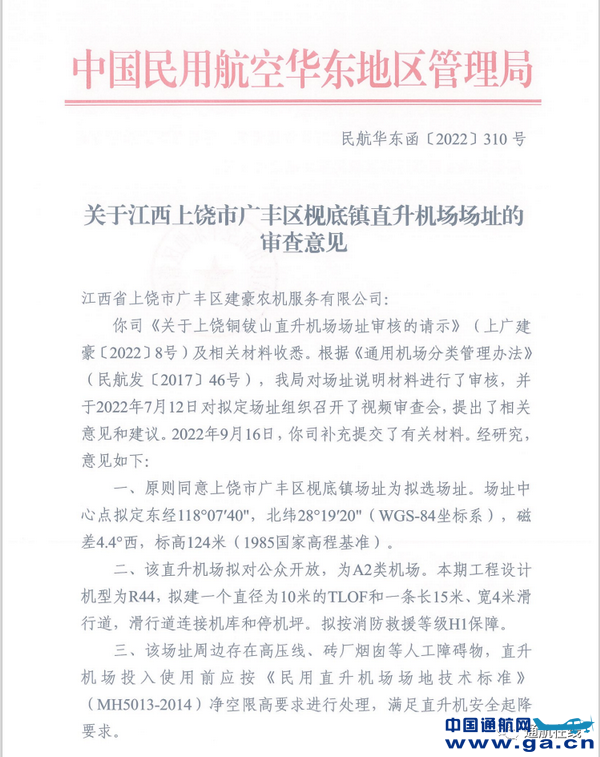 近日,中国民用航空华东地区管理局正式发文,同意上饶铜钹山直升机场项目选址,该意见为实现上饶首个通用机场的开工建设奠定了良好的基础。