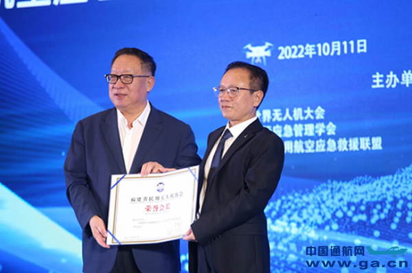 李建军会长为欧洲科学院院士、世界无人机大会主席杨金才颁发荣誉会长证书