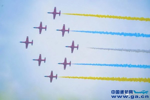 开幕式后,与会人员共同观看了精彩绝伦的飞行表演。来自中国的空军航空大学“红鹰”飞行表演队、红星表演队、山河表演队和来自俄罗斯的传奇表演队、极限表演队以及来自南非的飞行家表演队、红牛表演队等多支队伍在空中奉献了一场精彩大戏。