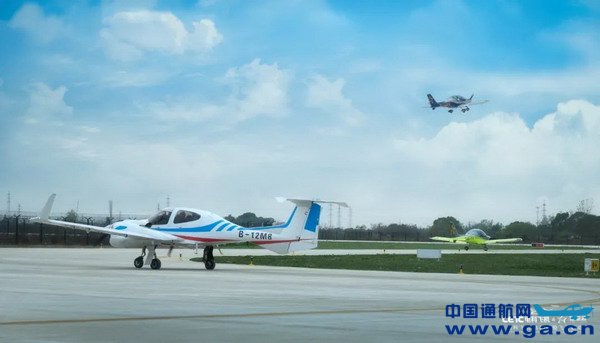 电科飞机DA42双发四座飞机与星空会的2架单发运动飞机在现场“三机同框”