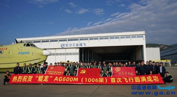12月9日,由我国航空工业自主研制的大型灭火/水上救援水陆两栖飞机“鲲龙”AG600M(1006架)在广东珠海首飞成功。这是2022年以来第三架完成首次飞行试验的AG600M飞机,标志着航空工业通飞华南公司“四个三”年度目标中“三架机首飞”任务完美收官!