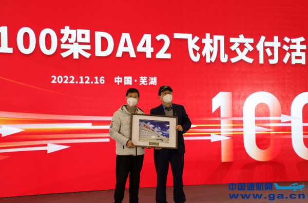 2022年12月16日,中电科芜湖钻石飞机制造有限公司(以下简称“电科飞机”)与龙昊通用航空集团第100架DA42飞机交付活动在芜湖航空产业园电科飞机厂区举行。全国政协委员、中国民航局原副局长李健、中国民用航空局空管办空管处调研员杨非、中国民用航空华东地区管理局副局长沈小明、民航安徽监管局党委书记、局长许晓红、中共芜湖市湾沚区委书记殷琼等40多位行业主管部门领导、地方政府领导、行业协会代表以及电科飞机重要合作伙伴出席了本次活动。