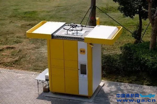 ▲无人机降落至取餐柜画面,目前美团无人机已在深圳部分商圈和社区开展常态化配送。