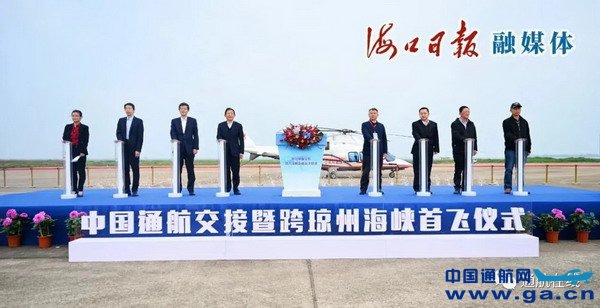 随后,中国通航直升机从海口起飞,跨越琼州海峡直达广东海安并进行往返飞行,然后沿海口西海岸进行海岸线飞行体验。