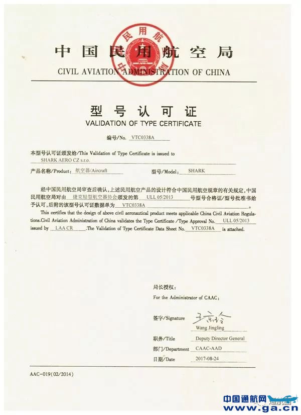 该机于20217年8月获得中国民航局的型号认可证(VTC)。2019年4月12日,在“第八次中国-中东欧国家领导人会晤”上,建新集团与捷克鲨鱼公司签署技术转让协议。随后,根据协议,由沧州中捷机场管理有限公司与该飞机技术持有人共同出资建设,在中捷成立了捷中鲨鱼(沧州)飞机制造有限公司,致力于开展鲨鱼飞机的制造、维修及销售等业务。