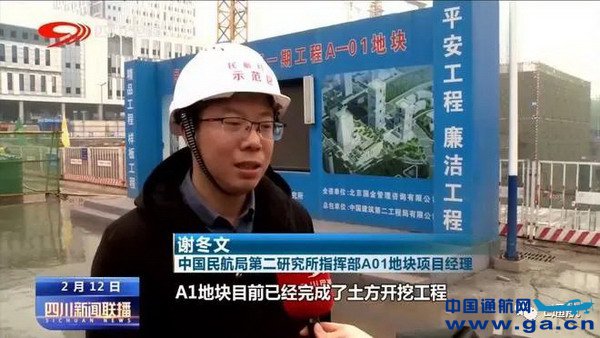 中国民航局第二研究所指挥部A01地块项目经理 谢冬文:A1地块目前已经完成了土方开挖工程,主要功能是用于科学研究和多功能的学术交流。A2地块预计在今年建成投入使用。整个园区年底部分投入使用,到2024年将基本建成。