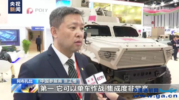 中国参展商 张正维:第一,它可以单车作战,集成度非常高,我们把相关的雷达、光电探测等等以往要分布在其他车辆上面的探测设备集成到了一台车上。第二,它是一种低功率的激光武器,相比于其他的我们以往的型号来说,它可能更适合于一些重要人物的安保,一些建筑物的周边进行随行的安防保护。第三,也是它比较大的一个特点,它可以进行行进间的发射,这款装备可以在一定速度的情况下同时实现行进间发射,这也是一个创新。