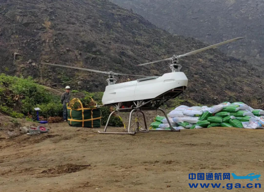 ▲驼航科技生产的“驼峰500”重载无人机正在执行任务。(受访者供图)