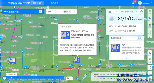 例如,墨迹天气轨道交通气象预警产品和方案通过整合观测站、雷达、卫星等多源气象数据,以及海量众包数据,同时运用先进的机器学习技术结合数值预报模式进行数据分析,将气象预报预警精确到轨道交通每一条线路、每一个站点,实现逐小时的恶劣天气告警,推送到可视化大屏和对应负责员工设备端,对天气变化提前准备、及时反应。同时该产品和方案支持智能生成专报,为管理人员提供决策参考,在后台可根据区域、线路、车站进行定制化设置,带来“一线(站)一策”的精细化管理能力。