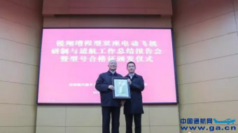 锐翔增程型电动飞机获颁型号合格证;北一飞四架G2型直升机获颁特许飞行证;南昌理工通航公司获颁91部运行合格证