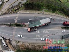 半挂车侧翻沪昆高速 无人机飞抵现场航拍执法