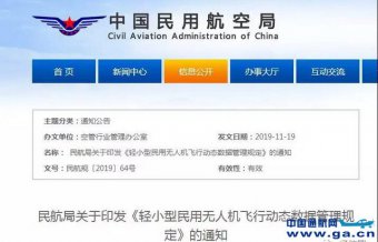 中国民航局正式印发《轻小型民用无人机飞行动态数据管理规定》