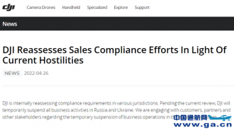 • 大疆 DJI 宣布暂停乌克兰与俄罗斯业务 日期:2022-04-27 11:58:58