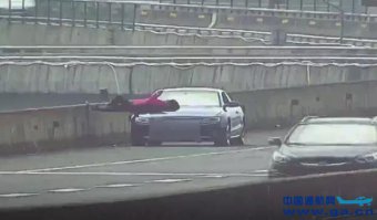 惊险!一位司机将车停在高速硬路肩上 人平躺在汽车引擎盖上玩无人机